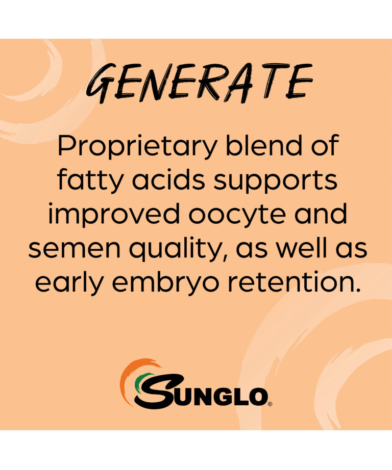 - Proprietary blend of fatty acids supports improved oocyte and semen quality, as well as early embryo retention.