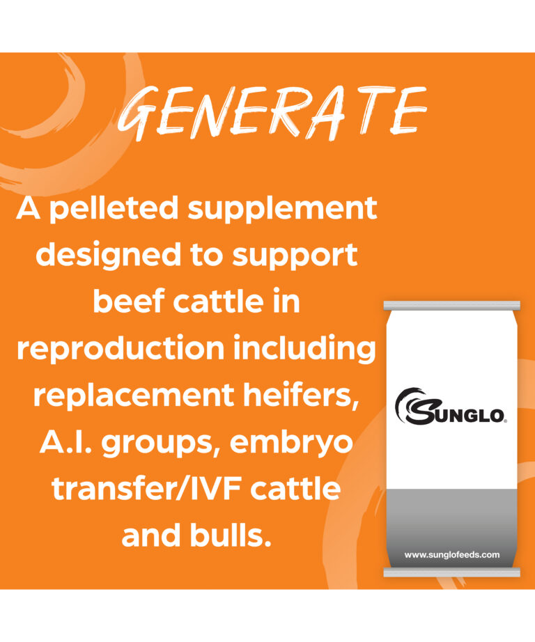 A pelleted supplement designed to support beef cattle in reproduction including replacement heifers, A.I. groups, embryo transfer/IVF cattle and bulls.