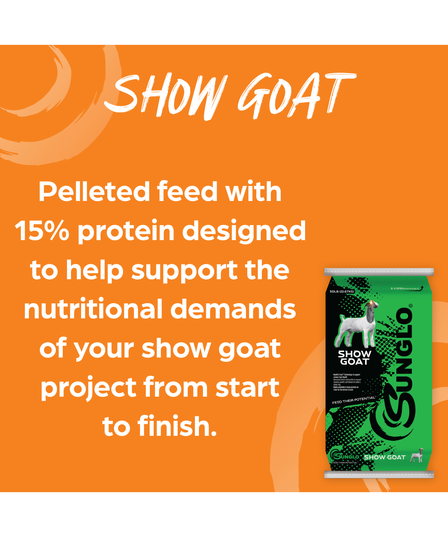 Pelleted feed with 15% protein designed to help support the nutritional demands of your show goat project from start to finish.